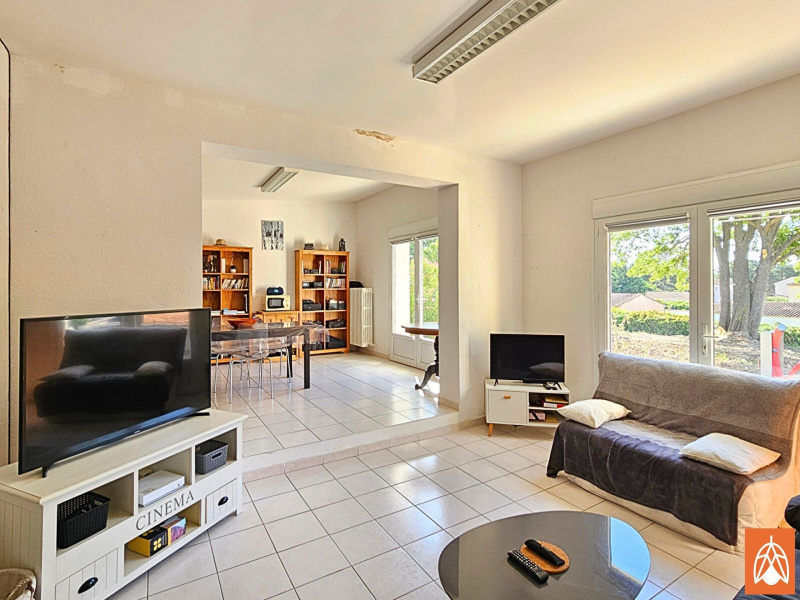 Au calme, dans un secteur résidentiel de Pélissanne, maison de type T4 de plain-pied, non mitoyenne, d'une surface habitable d'environ 104 m2 avec garage réaménagé de 15 m2 et implantée sur un terrain plat de 487 m2.