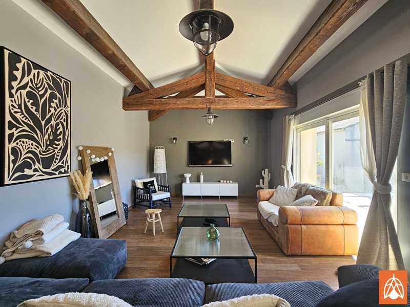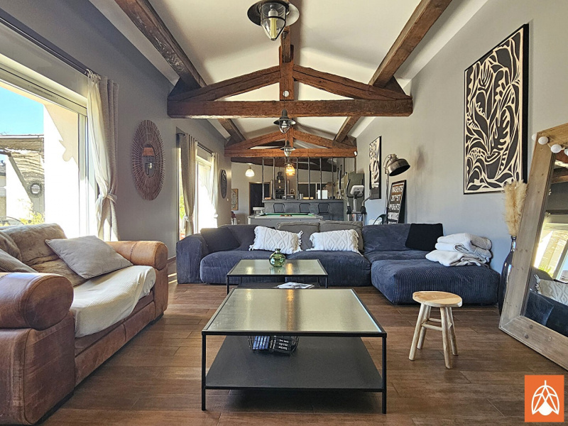 De construction traditionnelle, cette maison chaleureuse et confortable offre de beaux et lumineux espaces intérieurs. Elle a fait l'objet d'une rénovation soignée en 2011 avec des matériaux actuels et de qualité, apportant une touche de modernité tout en préservant son caractère et le cachet de ses poutres apparentes.